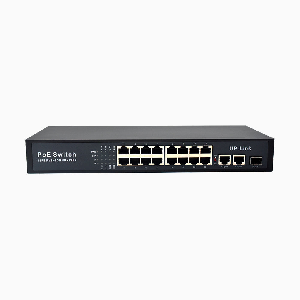 The PoE Ethernet switch provides 16 10/100/1000 Mbps RJ45 ports that can automatically identify and power PoE devices, connecting all your devices together. Up to 25W power is supported for each PoE port, which allows for stable transmission.