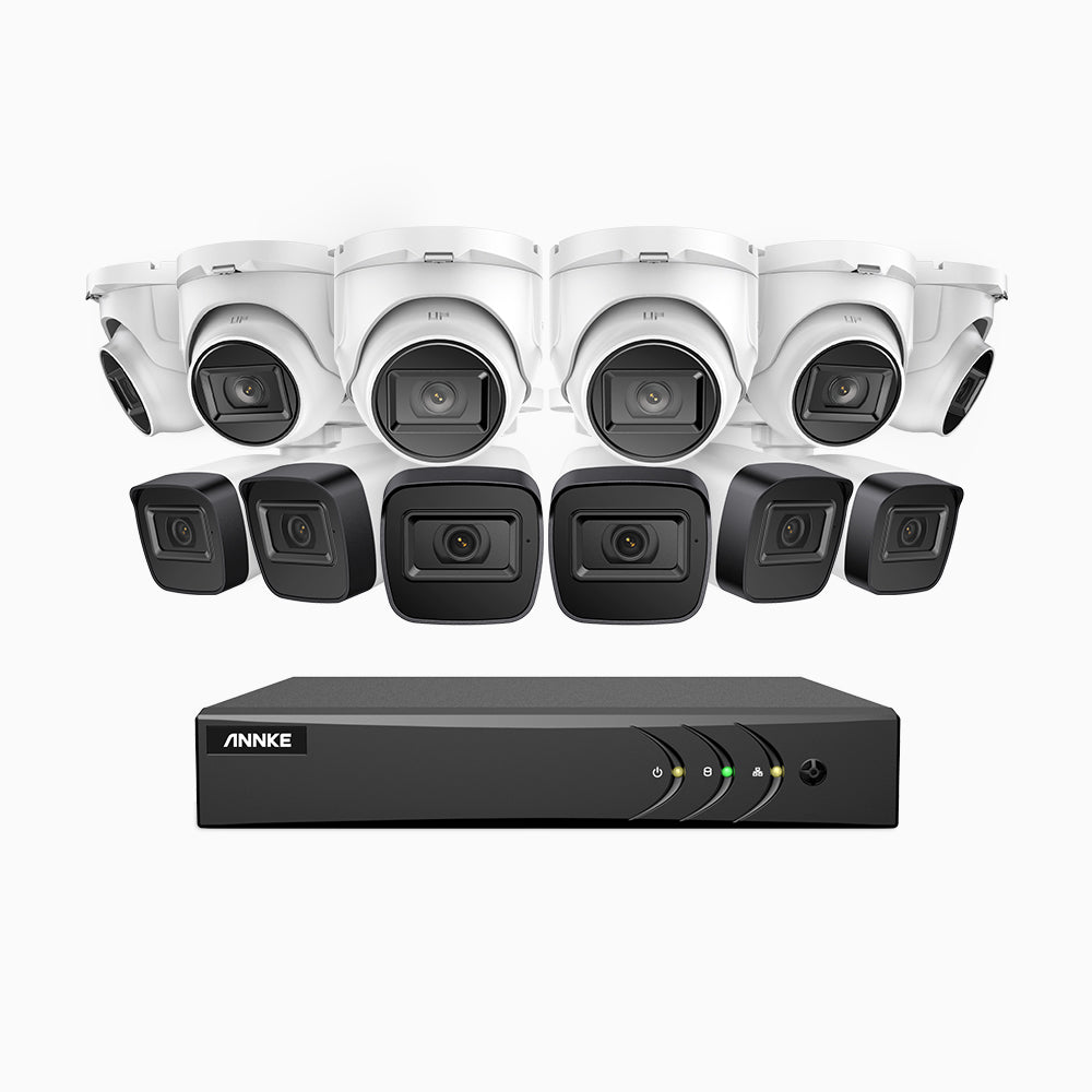 EL200 - 1080p 16 Channel Outdoor Wired Security CCTV System with 6 Bullet & 6 Turret Cameras, 3.6 MM Lens, Smart DVR with Human & Vehicle Detection, 66 ft Infrared Night Vision, 4-in-1 Output Signal, IP67