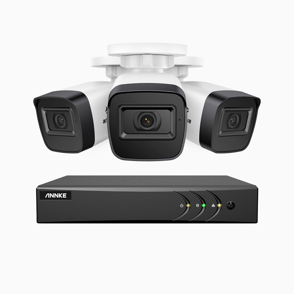 EL200 - 1080p 8 Channel Outdoor Wired Security CCTV System with 3 Cameras, 3.6 MM Lens, Smart DVR with Human & Vehicle Detection, 66 ft Infrared Night Vision, 4-in-1 Output Signal, IP67
