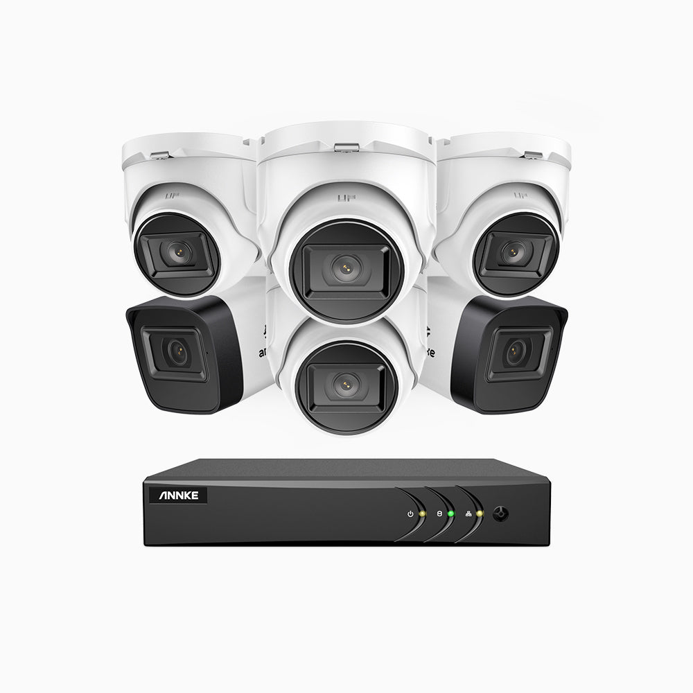 EL200 - 1080p 8 Channel Outdoor Wired Security CCTV System with 2 Bullet & 4 Turret Cameras, 3.6 MM Lens, Smart DVR with Human & Vehicle Detection, 66 ft Infrared Night Vision, 4-in-1 Output Signal, IP67