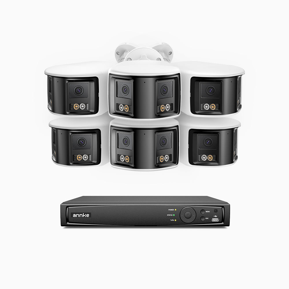 FDH600 - 8 Channel PoE Security System with 6 Dual Lens Cameras, 6MP Resolution, 180° Panoramic View, Smart Dual Light Night Vision, Two-Way Audio, Active Siren & Alarm, Human & Vehicle Detection, IP67
