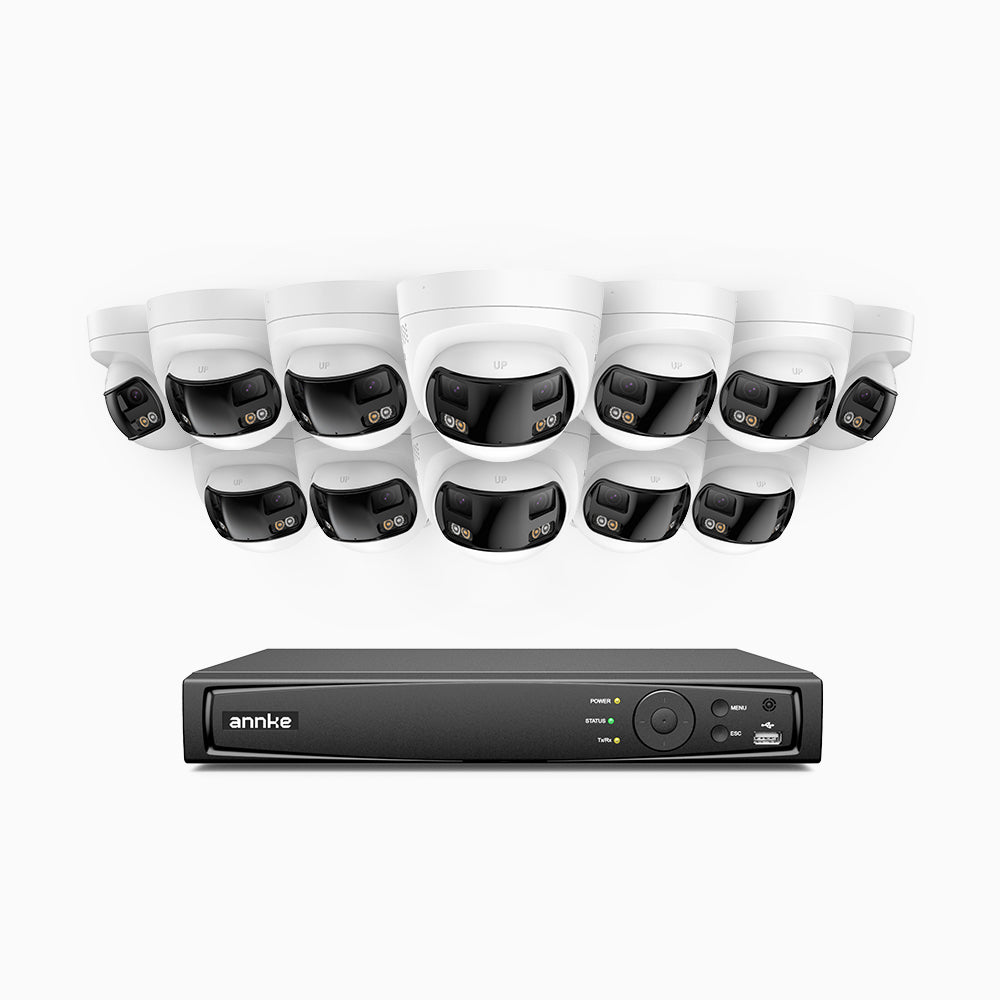 FDH800 - 16 Channel PoE Security System with 12 X 8MP UHD Dual Lens Cameras, 180° Panoramic View, Smart Dual Light Night Vision, Two-Way Audio, Active Siren & Alarm, Human & Vehicle Detection, IP67