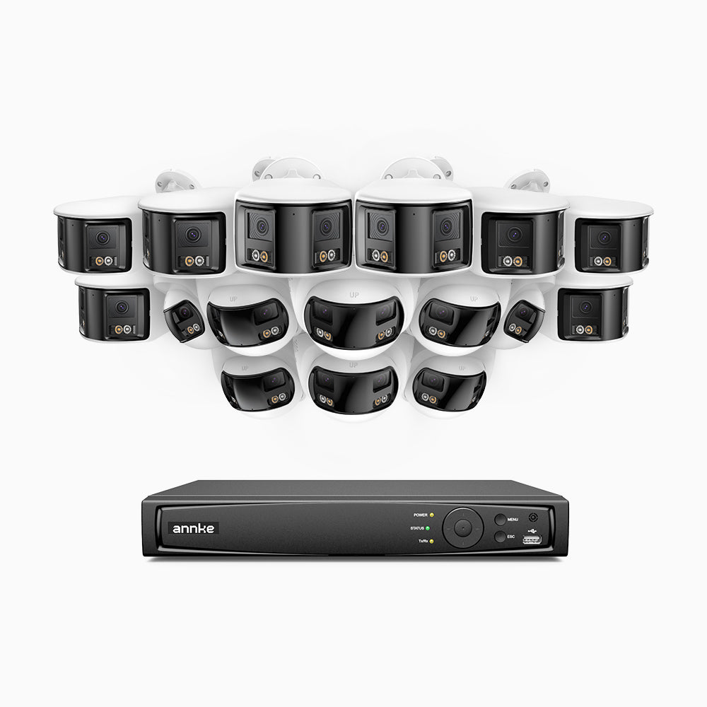 FDH800 - 16 Channel PoE Security System with 8 Bullet & 8 Turret 8MP UHD Dual Lens Cameras, 180° Panoramic View, Smart Dual Light Night Vision, Two-Way Audio, Active Siren & Alarm, Human & Vehicle Detection, IP67