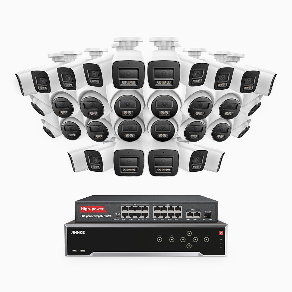 H1200 - 4K 12MP 32 Channel PoE Security System with 16 Bullet & 16 Turret Cameras, Color & IR Night Vision, Human & Vehicle Detection, H.265+, Built-in Microphone, Max. 512 GB Local Storage, IP67
