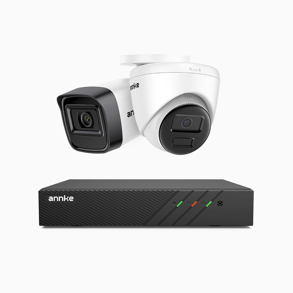 H300 - 2K 3MP 8 Channel PoE Security System with 1 Bullet & 1 Turret Cameras, EXIR 2.0 Night Vision, Motion Detection, H.265+, IP67 Waterproof