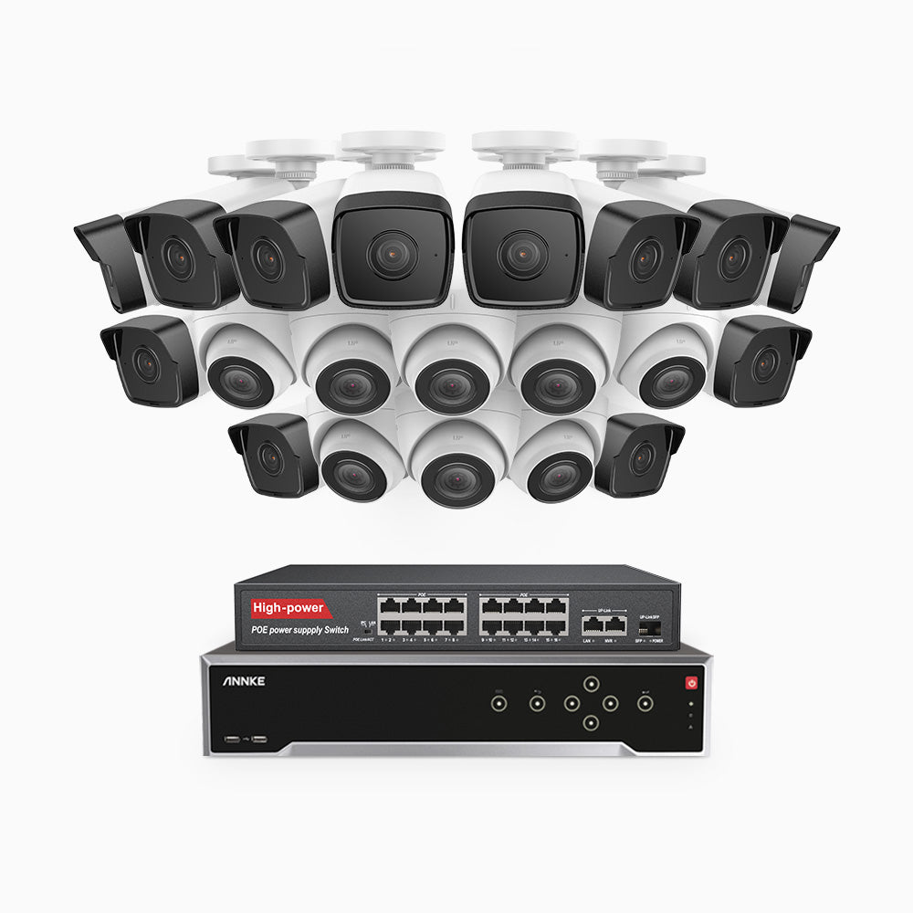 H500 - 3K 32 Channel PoE Security System with 12 Bullet & 8 Turret Cameras, EXIR 2.0 Night Vision, Built-in Mic & SD Card Slot, Works with Alexa, 16-Port PoE Switch Included ,IP67 Waterproof, RTSP Supported