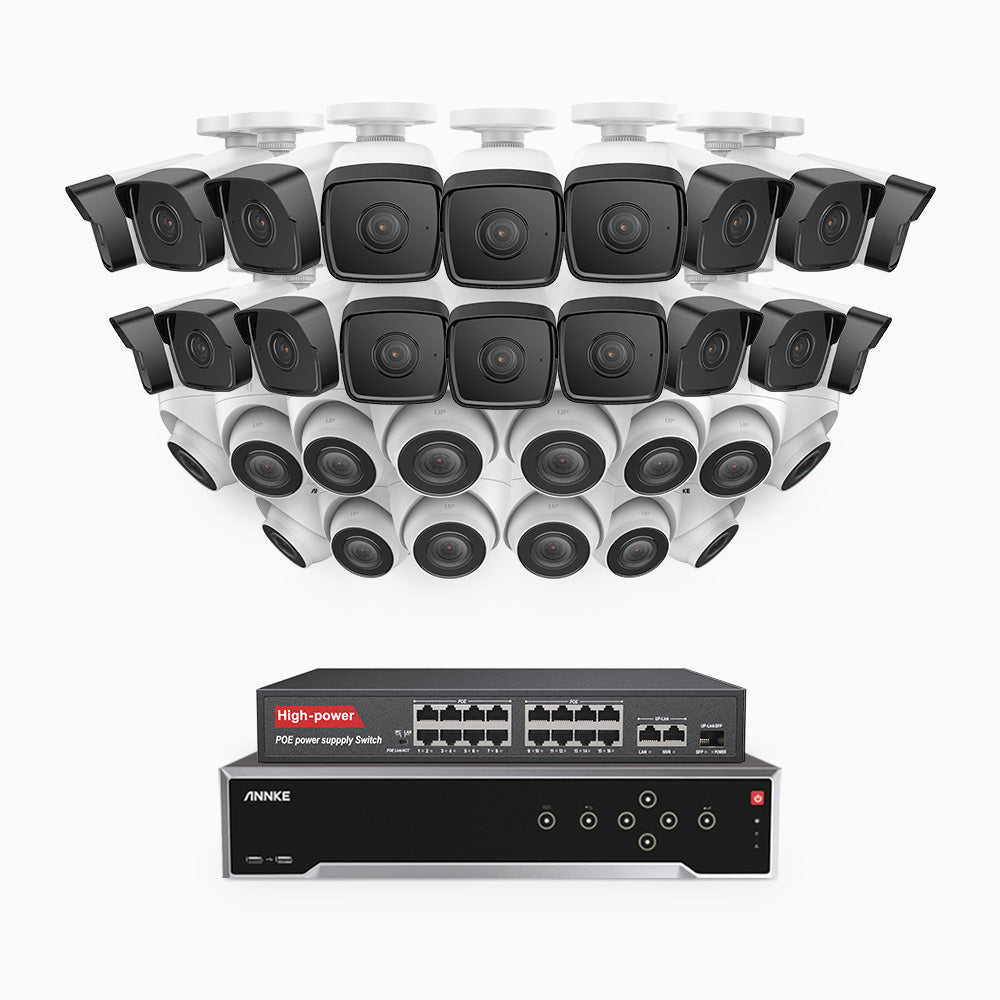 H500 - 3K 32 Channel PoE Security System with 18 Bullet & 14 Turret Cameras, EXIR 2.0 Night Vision, Built-in Mic & SD Card Slot, Works with Alexa, 16-Port PoE Switch Included ,IP67 Waterproof, RTSP Supported