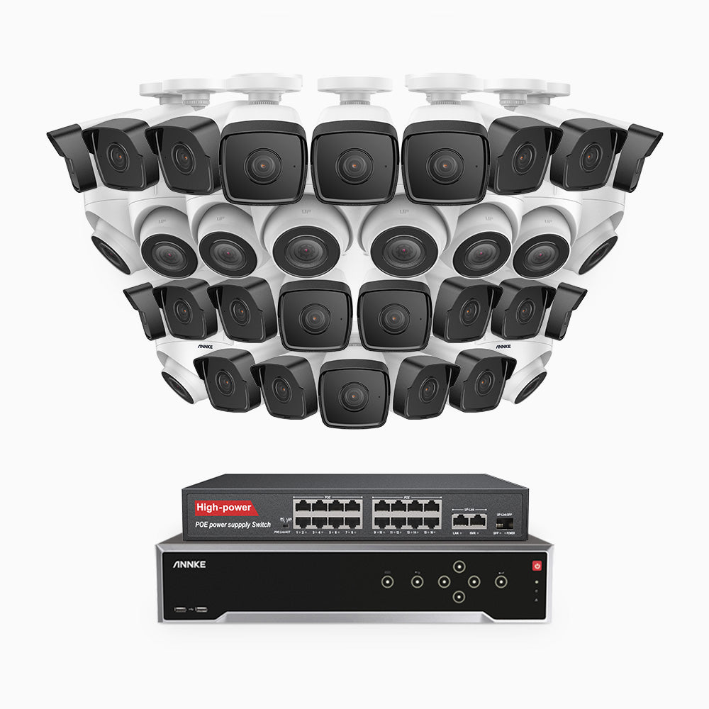 H500 - 3K 32 Channel PoE Security System with 22 Bullet & 10 Turret Cameras, EXIR 2.0 Night Vision, Built-in Mic & SD Card Slot, Works with Alexa, 16-Port PoE Switch Included ,IP67 Waterproof, RTSP Supported