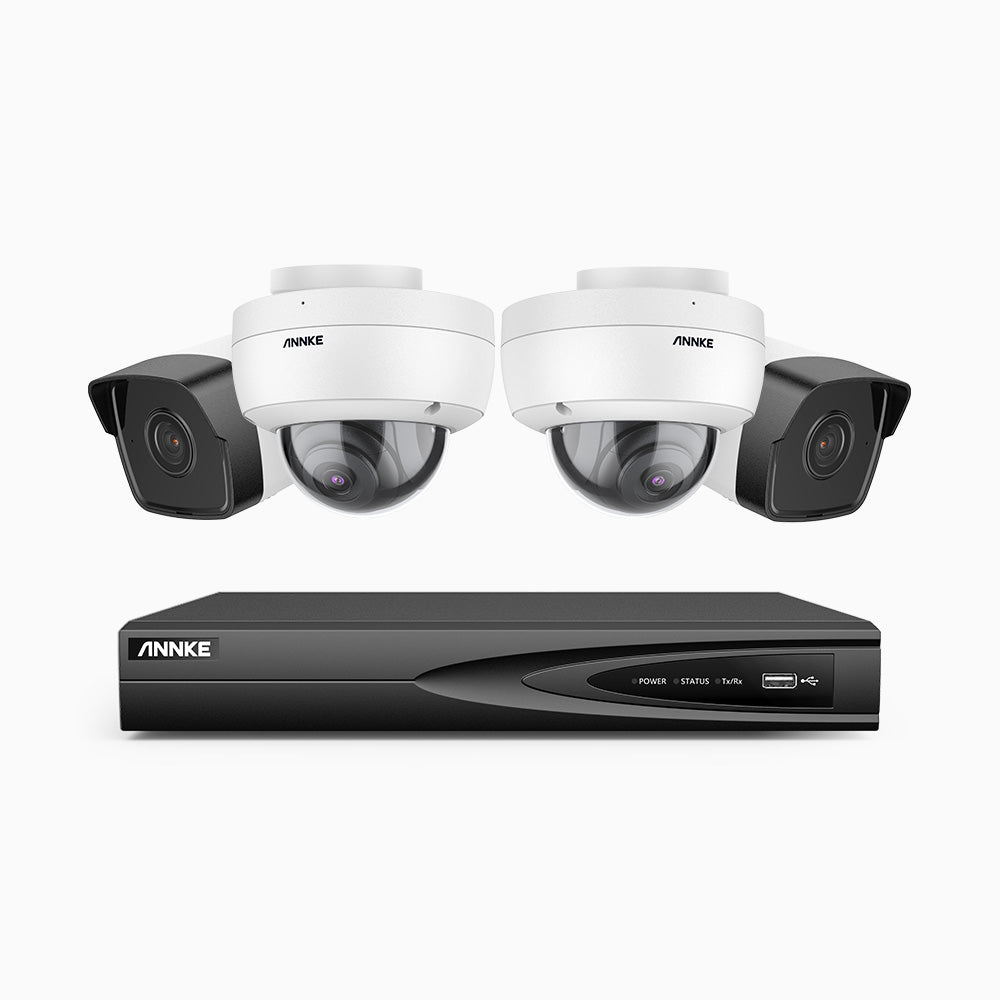H500 - 3K 4 Channel PoE Security System with 2 Bullet & 2 Dome Cameras, EXIR 2.0 Night Vision, Built-in Mic & SD Card Slot, Works with Alexa ,IP67 Waterproof, RTSP Supported
