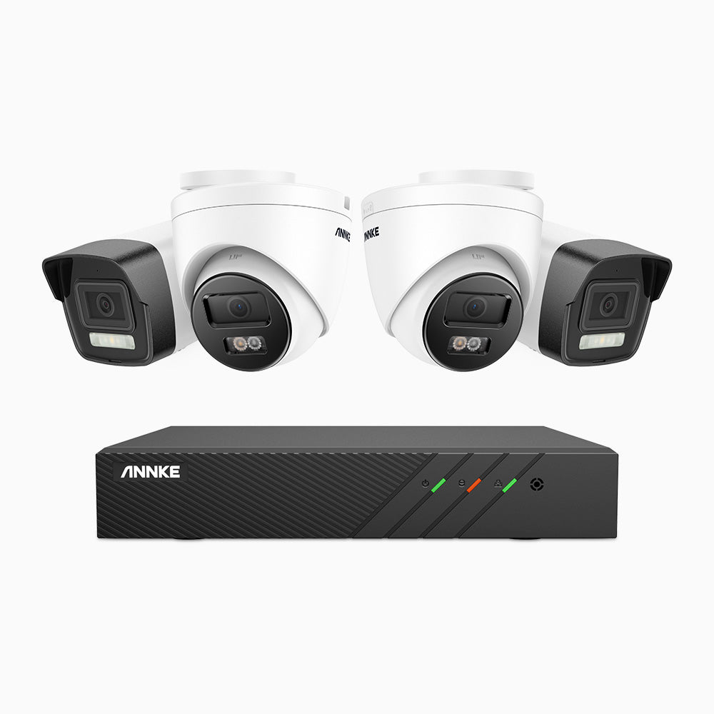 H500P - 3K 8 Channel PoE Security System with 2 Bullet & 2 Turret Cameras, Color & IR Night Vision, 3072*1728 Resolution, f/1.6 Aperture (0.005 Lux), Human & Vehicle Detection, Built-in Microphone,IP67