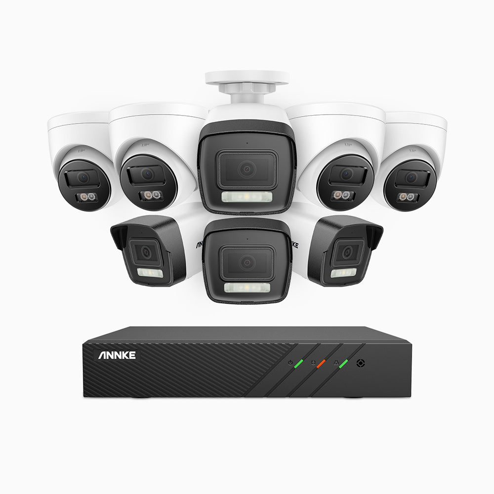 H500P - 3K 8 Channel PoE Security System with 4 Bullet & 4 Turret Cameras, Color & IR Night Vision, 3072*1728 Resolution, f/1.6 Aperture (0.005 Lux), Human & Vehicle Detection, Built-in Microphone,IP67