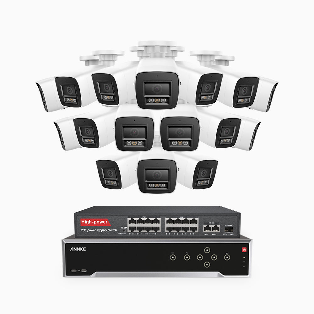 H800 - 4K 32 Channel 16 Cameras PoE Security System, Human & Vehicle Detection, Color & IR Night Vision, Built-in Mic, RTSP Supported, 16-Port PoE Switch Included