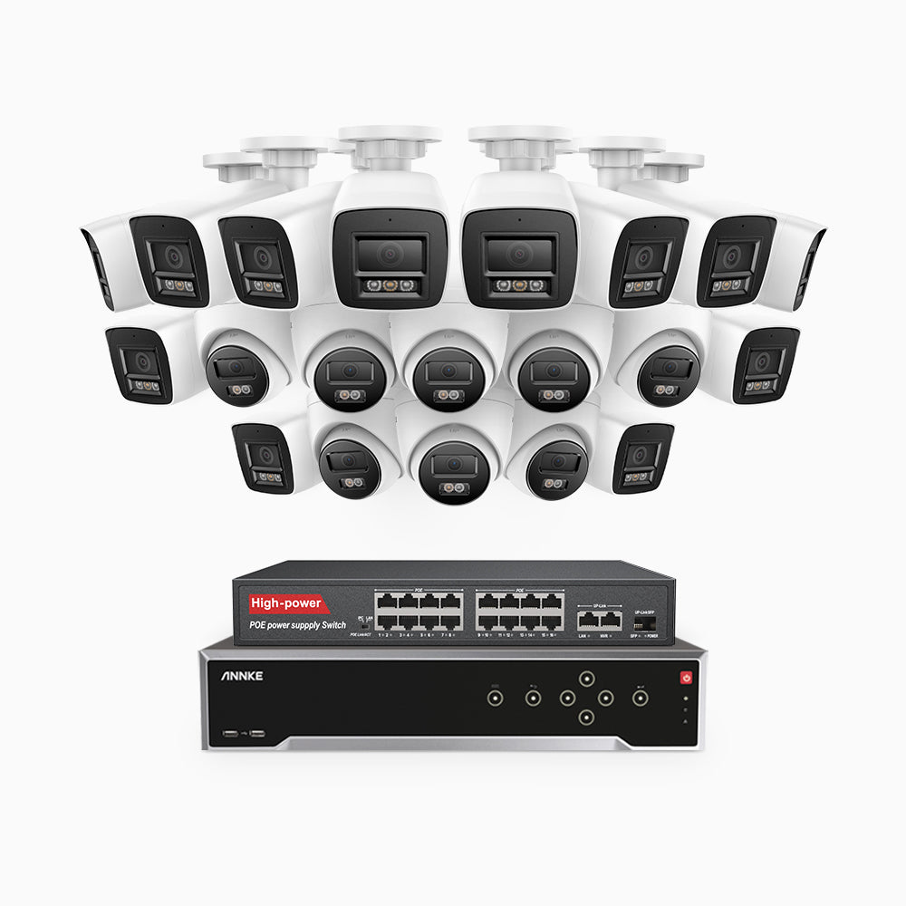 H800 - 4K 32 Channel PoE Security System with 12 Bullet & 8 Turret Cameras, Human & Vehicle Detection, Color & IR Night Vision, Built-in Mic, RTSP Supported, 16-Port PoE Switch Included