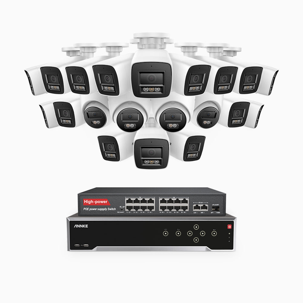 H800 - 4K 32 Channel PoE Security System with 16 Bullet & 4 Turret Cameras, Human & Vehicle Detection, Color & IR Night Vision, Built-in Mic, RTSP Supported, 16-Port PoE Switch Included