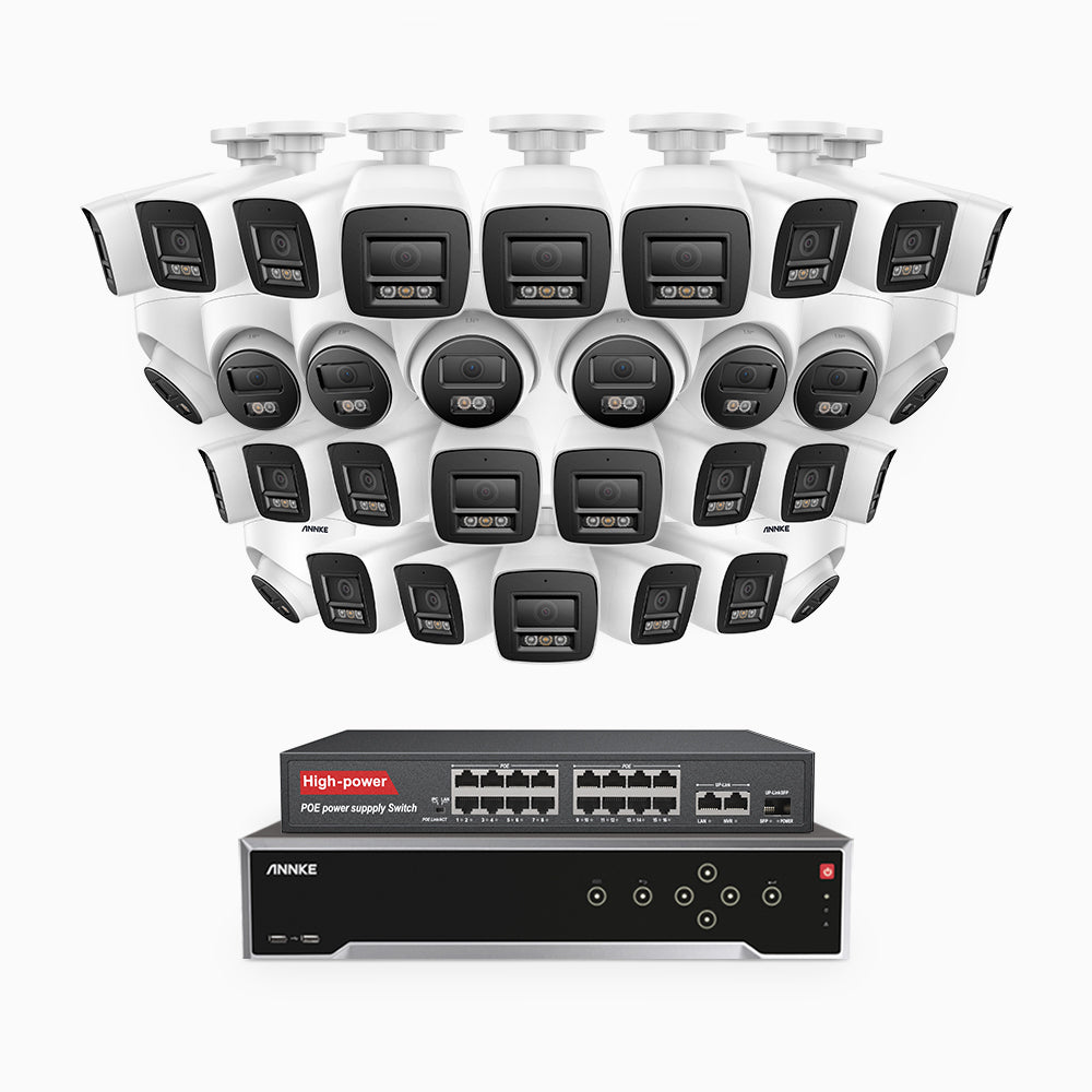 H800 - 4K 32 Channel PoE Security System with 22 Bullet & 10 Turret Cameras, Human & Vehicle Detection, Color & IR Night Vision, Built-in Mic, RTSP Supported, 16-Port PoE Switch Included
