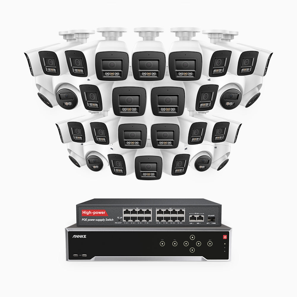 H800 - 4K 32 Channel PoE Security System with 24 Bullet & 8 Turret Cameras, Human & Vehicle Detection, Color & IR Night Vision, Built-in Mic, RTSP Supported, 16-Port PoE Switch Included