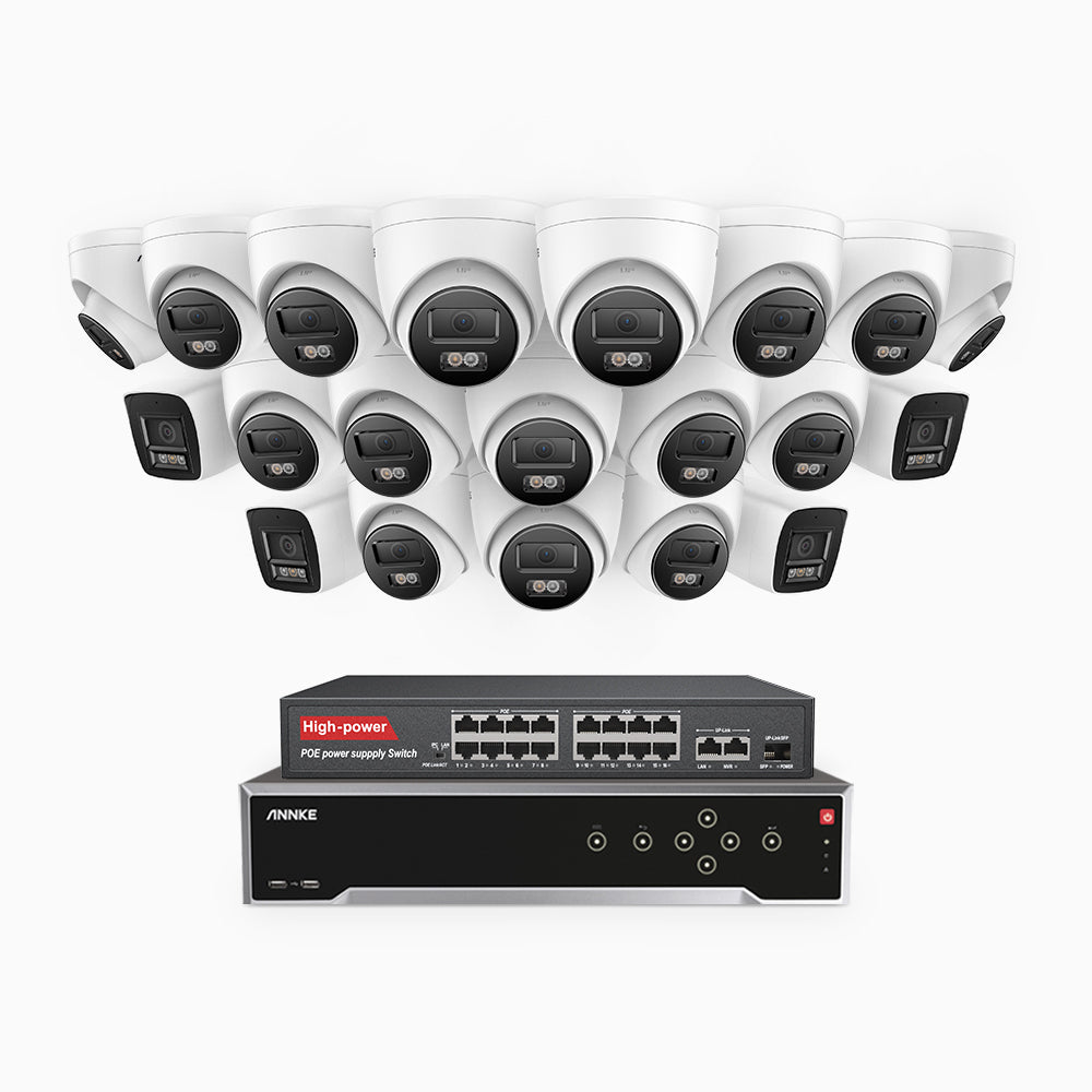H800 - 4K 32 Channel PoE Security System with 4 Bullet & 16 Turret Cameras, Human & Vehicle Detection, Color & IR Night Vision, Built-in Mic, RTSP Supported, 16-Port PoE Switch Included