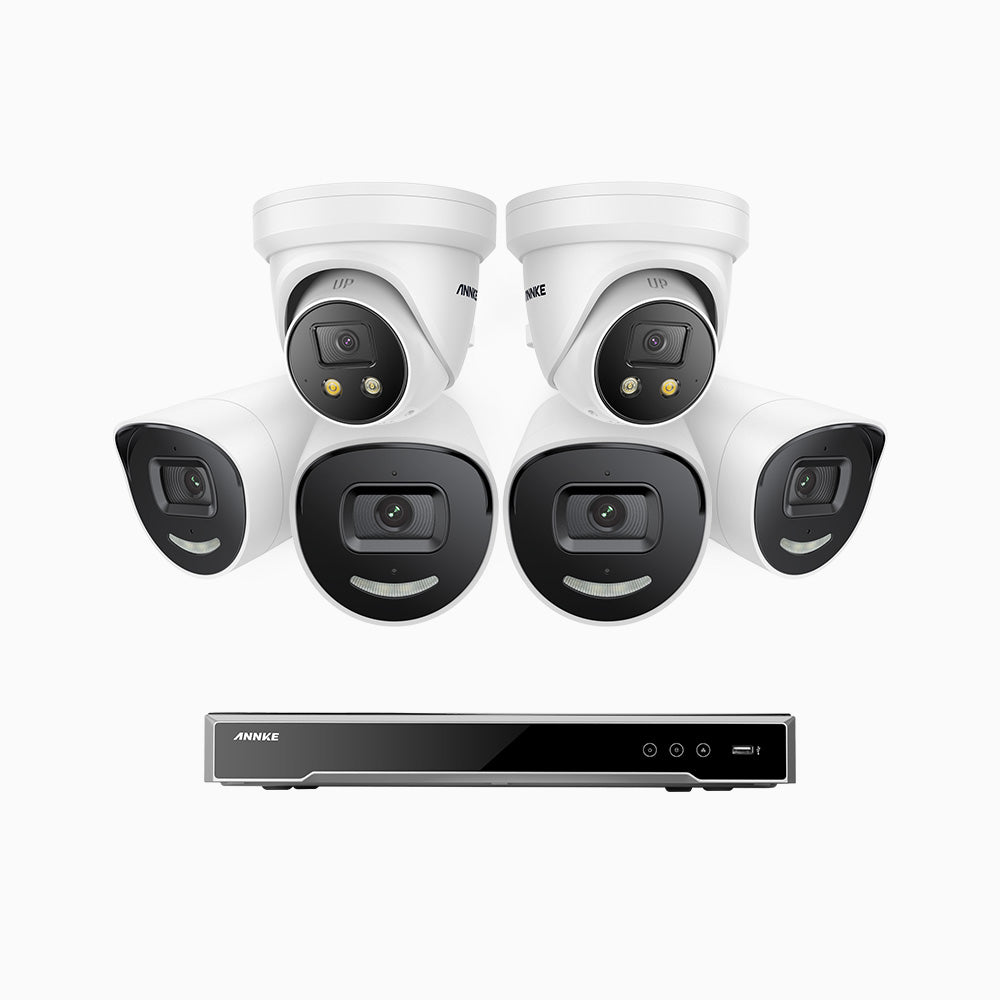 H800X - 4K 16 Channel PoE Security System with 4 Bullet & 2 Turret Cameras, 1/1.8'' BSI Sensor, f/1.6 Aperture (0.003 Lux), Siren & Strobe Alarm,Two-Way Audio, Human & Vehicle Detection, Perimeter Protection, Works with Alexa