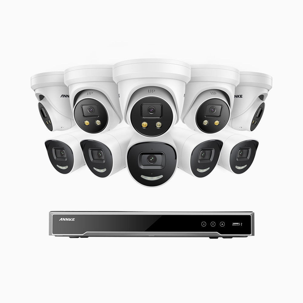 H800X - 4K 16 Channel PoE Security System with 5 Bullet & 5 Turret Cameras, 1/1.8'' BSI Sensor, f/1.6 Aperture (0.003 Lux), Siren & Strobe Alarm,Two-Way Audio, Human & Vehicle Detection, Perimeter Protection, Works with Alexa