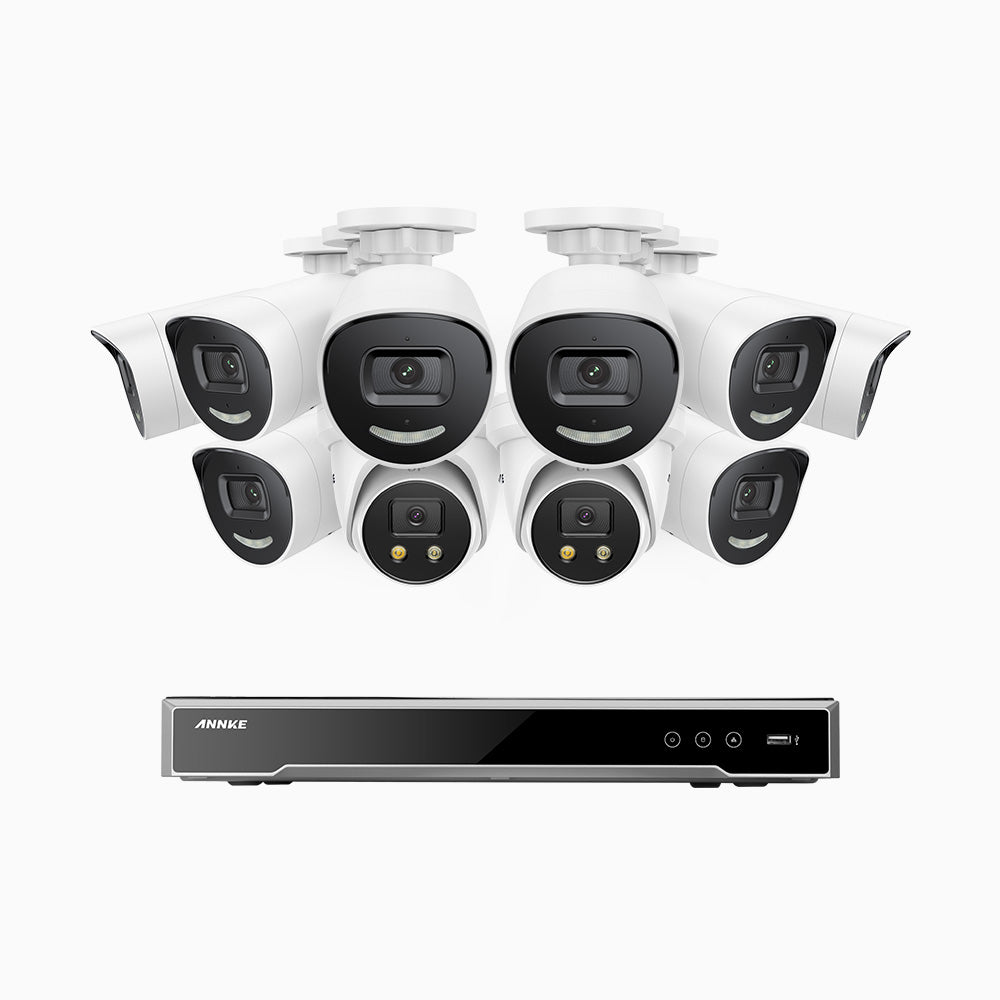 H800X - 4K 16 Channel PoE Security System with 8 Bullet & 2 Turret Cameras, 1/1.8'' BSI Sensor, f/1.6 Aperture (0.003 Lux), Siren & Strobe Alarm,Two-Way Audio, Human & Vehicle Detection, Perimeter Protection, Works with Alexa