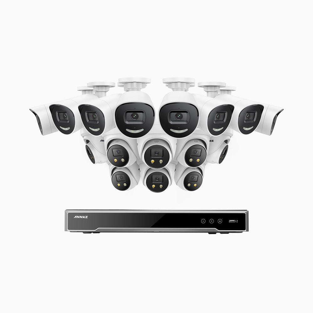 H800X - 4K 16 Channel PoE Security System with 8 Bullet & 8 Turret Cameras, 1/1.8'' BSI Sensor, f/1.6 Aperture (0.003 Lux), Siren & Strobe Alarm,Two-Way Audio, Human & Vehicle Detection, Perimeter Protection, Works with Alexa