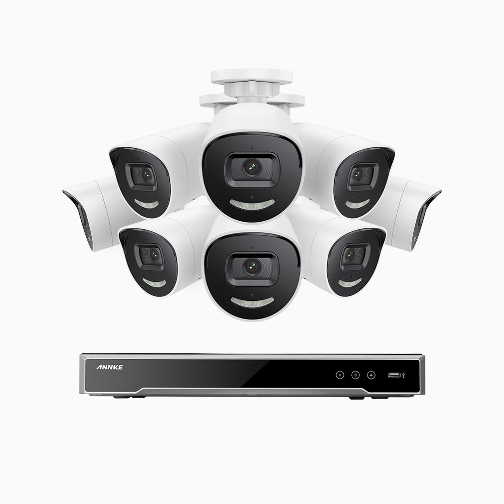 H800X - 4K 8 Channel 8 Cameras PoE Security System, 1/1.8'' BSI Sensor, f/1.6 Aperture (0.003 Lux), Siren & Strobe Alarm,Two-Way Audio, Human & Vehicle Detection, Perimeter Protection, Works with Alexa