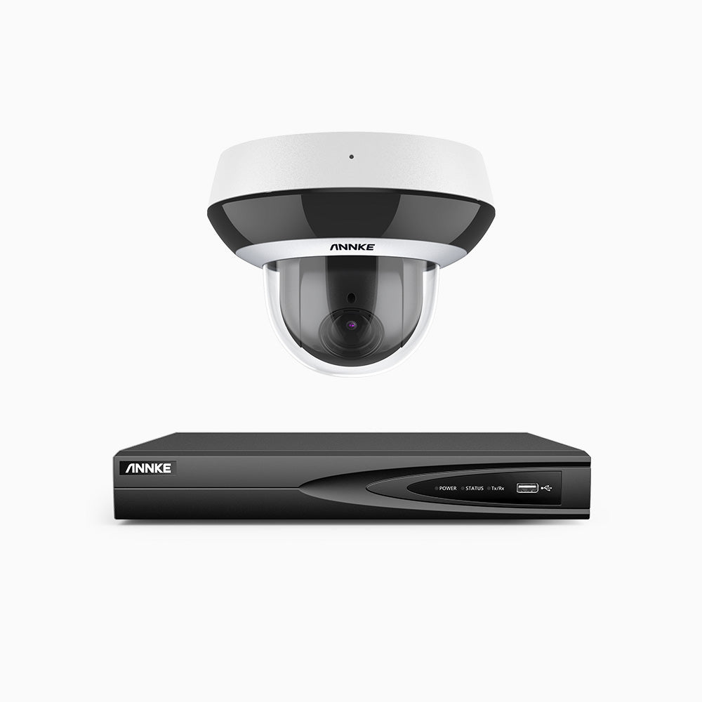 HZ504P - 4 Channel 1 Camera PTZ PoE Security System, 3K Super HD, 4X Optical Zoom, IK10 Vandal-Resistant, 2.8-12 mm Lens, Intelligent Behavior Analysis, Color Night Vision & Anti-Fog