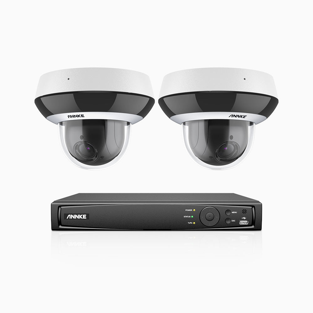 HZ504P - 8 Channel 2 Cameras PTZ PoE Security System, 3K Super HD, 4X Optical Zoom, IK10 Vandal-Resistant, 2.8-12 mm Lens, Intelligent Behavior Analysis, Color Night Vision & Anti-Fog