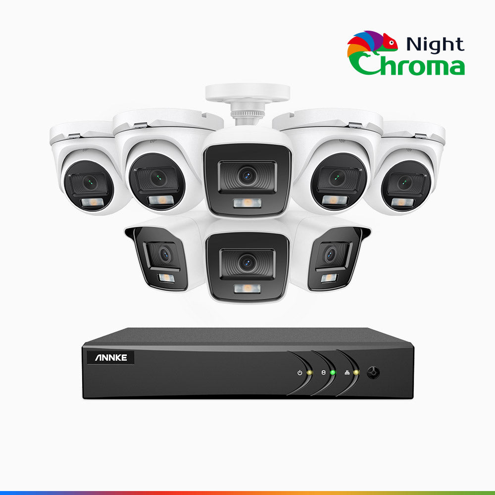 NightChromaTM NAK200 - 1080P 8 Channel Wired CCTV System with 4 Bullet & 4 Turret Cameras, Acme Colour Night Vision, f/1.0 Super Aperture, 0.001 Lux, 121° FoV, Active Alignment