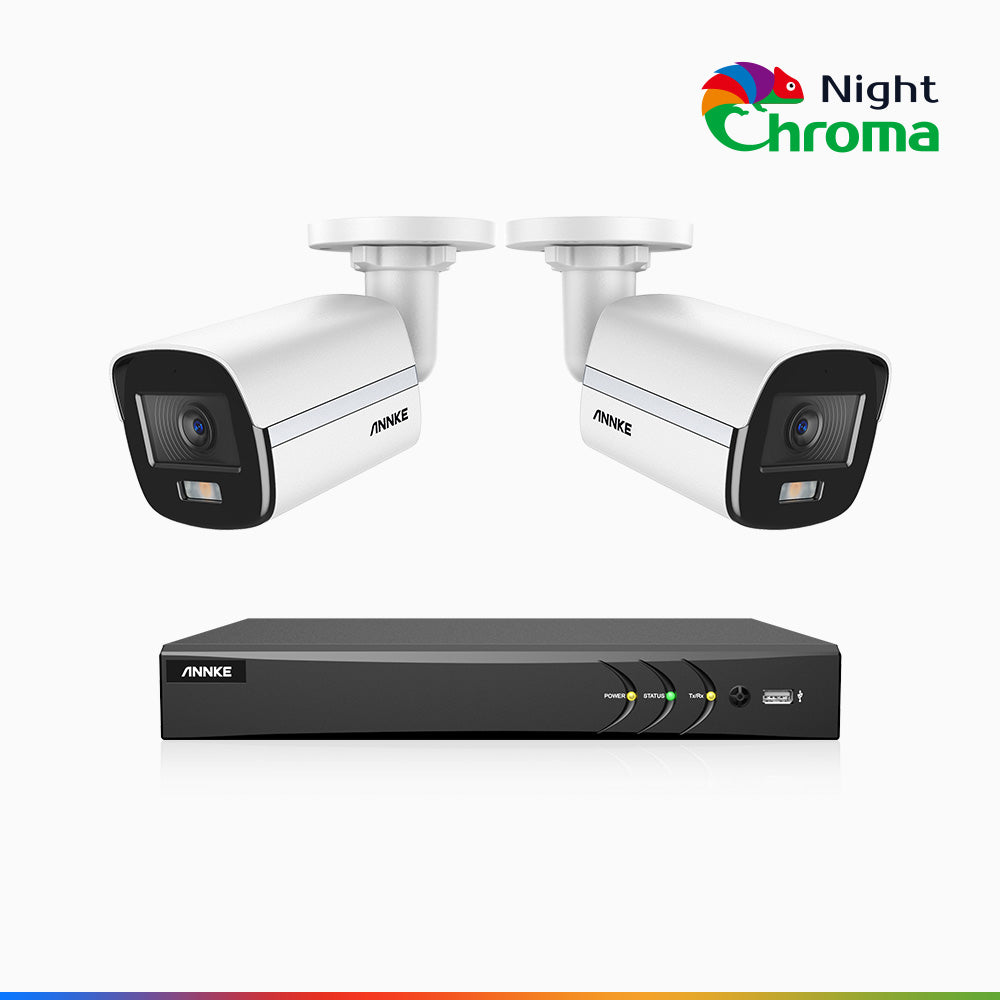 NightChromaTM NAK500 - Updated Version, 3K 8 Channel 2 Cameras TVI Security System, Acme Color Night Vision, 2960 × 1665 Resolution, f/1.0 Aperture (0.001 Lux), Built-in Microphone, IP67