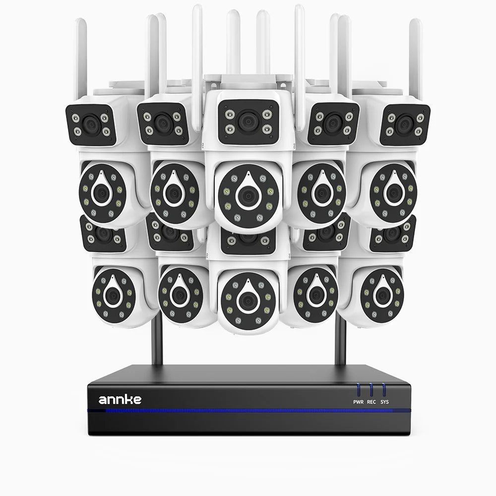 WCDS400 - 4MP 16 Channel 10 Dual-Lens WiFi Cameras Outdoor Wireless NVR Security System, 2.4G/5G Dual-Band WiFi, 350° Pan & 90° Tilt, Dual-Light Night Vision, Motion Detection, Two-Way Audio, Works with Alexa
