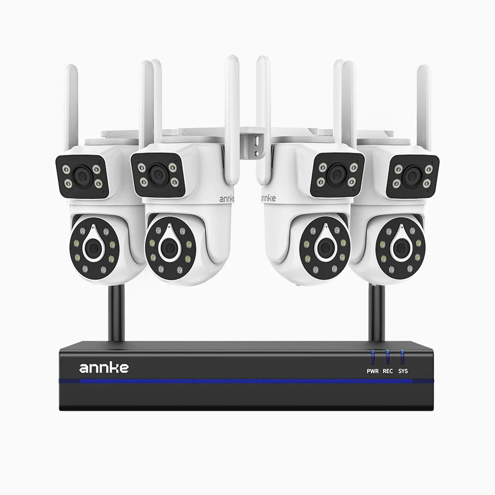 WCDS400 - 4MP 8 Channel 4 Dual-Lens WiFi Cameras Outdoor Wireless NVR Security System, 2.4G/5G Dual-Band WiFi, 350° Pan & 90° Tilt, Dual-Light Night Vision, Motion Detection, Two-Way Audio, Works with Alexa