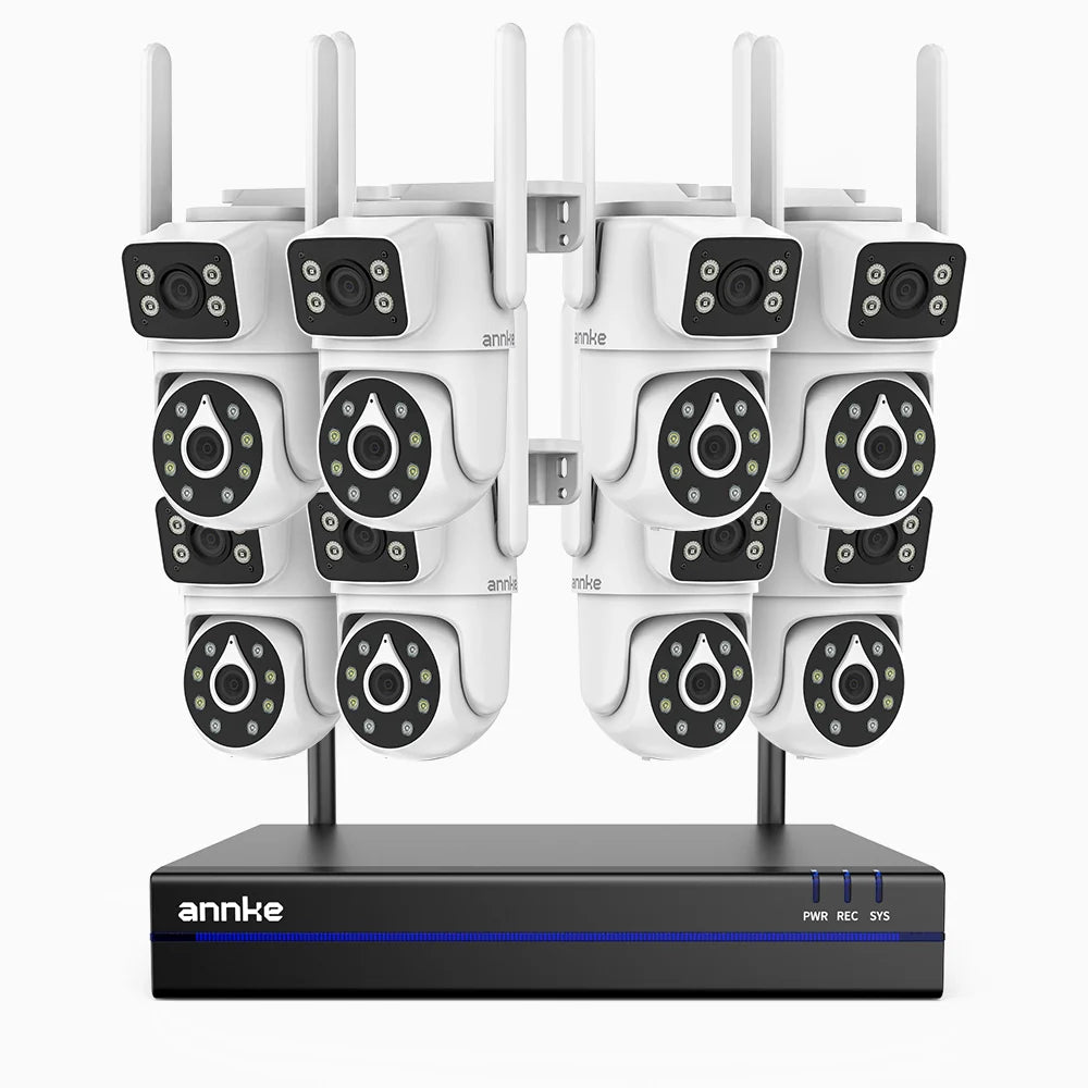 WCDS400 - 4MP 8 Channel 8 Dual-Lens WiFi Cameras Outdoor Wireless NVR Security System, 2.4G/5G Dual-Band WiFi, 350° Pan & 90° Tilt, Dual-Light Night Vision, Motion Detection, Two-Way Audio, Works with Alexa